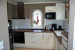 Wohnzimmer anhängende moderne Einbauküche ist voll ausgestattet und